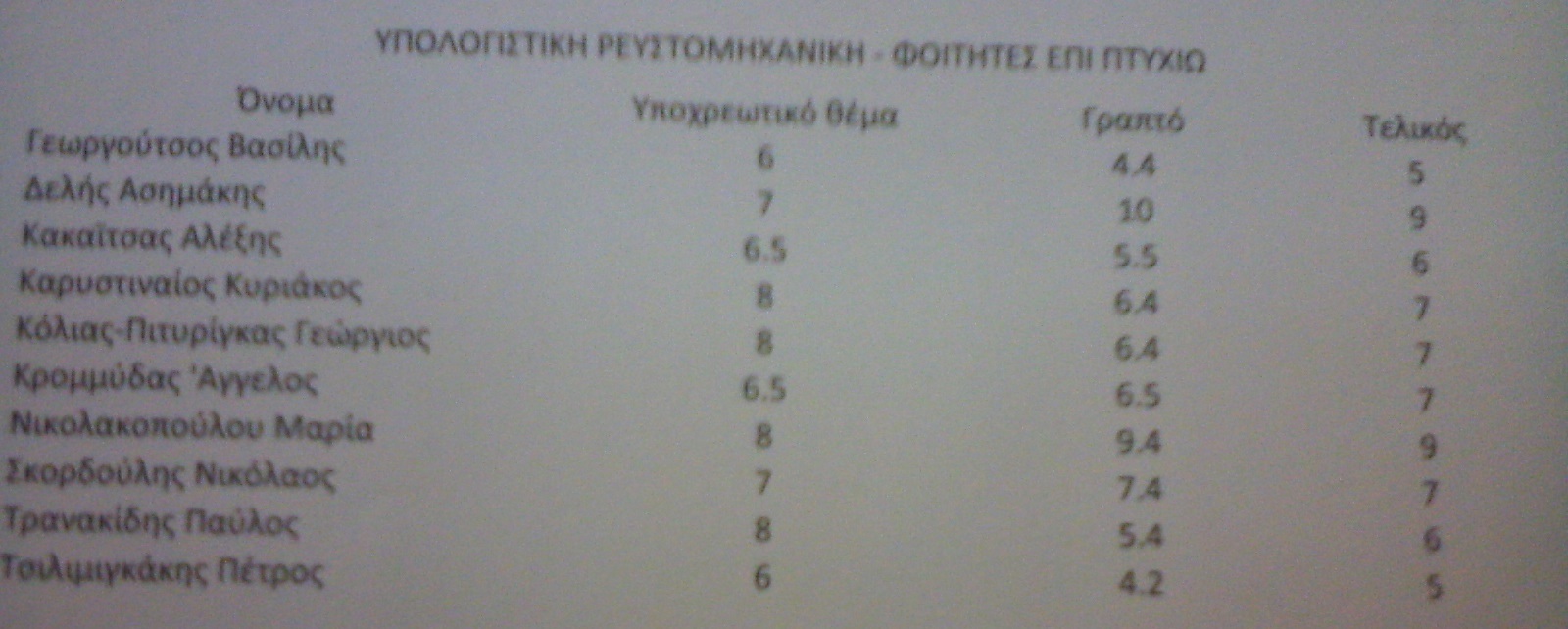 Μαντώ wrote:Πηγα σημερα στο Ανυμ και υπολογιστικη ρευστομηχανικη περασαν ΟΛΟΙ οι επι πτυχιο. Μονο 2 5αρια εχει και τα υπολοιπα παραπανω.