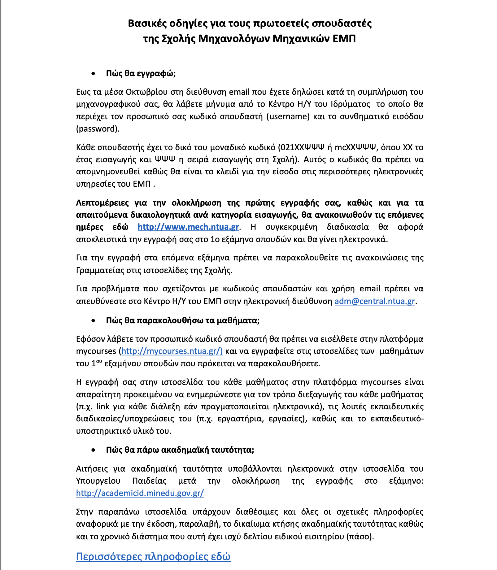 Re: Βασικές οδηγίες για τους πρωτοετείς σπουδαστές της Σχολή